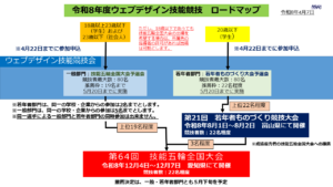 ウェブデザイン技能競技会から若年者ものづくり競技大会、技能五輪全国大会までのロードマップは下記の図のようになっております。